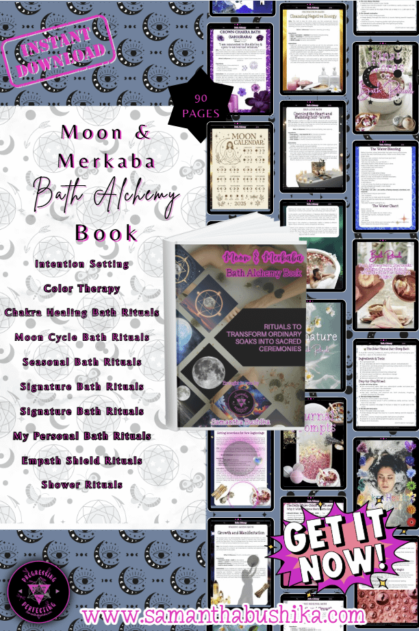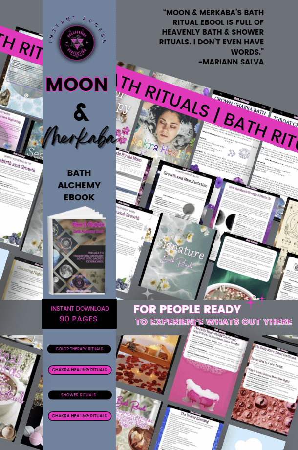 Moon & Merkaba is your gateway to sacred self-care. This beautifully crafted digital book teaches you how to transform everyday baths and showers into alchemical rituals of healing, manifestation, and energetic alignment.